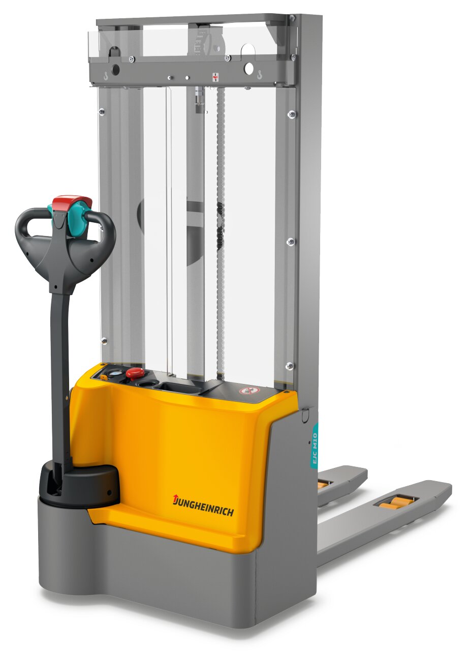 Los apiladores eléctricos ágiles y eficientes EJC M10 ZT/M13 ZT son perfectamente aptos para el sencillo transporte intraempresarial de las mercancías. La construcción compacta y el mástil de elevación telescópico doble los convierten en los ayudantes perfectos para la preparación de pedidos ocasional o para el apilado de bienes ligeros en zonas de almacén estrechas. Gracias a la técnica de corriente trifásica potente y sin mantenimiento, reduce sus costes de explotación y crea las mejores condiciones para un despacho de mercancías rápido y rentable. La gestión de baterías económica y el sistema automático de desconexión inteligente protegen la batería; gracias al cargador integrado puede cargar el apilador en cualquier toma de corriente de 230 V. La seguridad sigue teniendo la máxima importancia. Así, el reducido margen con el suelo disminuye el riesgo de sufrir lesiones en los pies. También la carcasa completamente cerrada y la perfecta visibilidad a través del mástil dúplex contribuyen a una rutina diaria segura en el almacén.