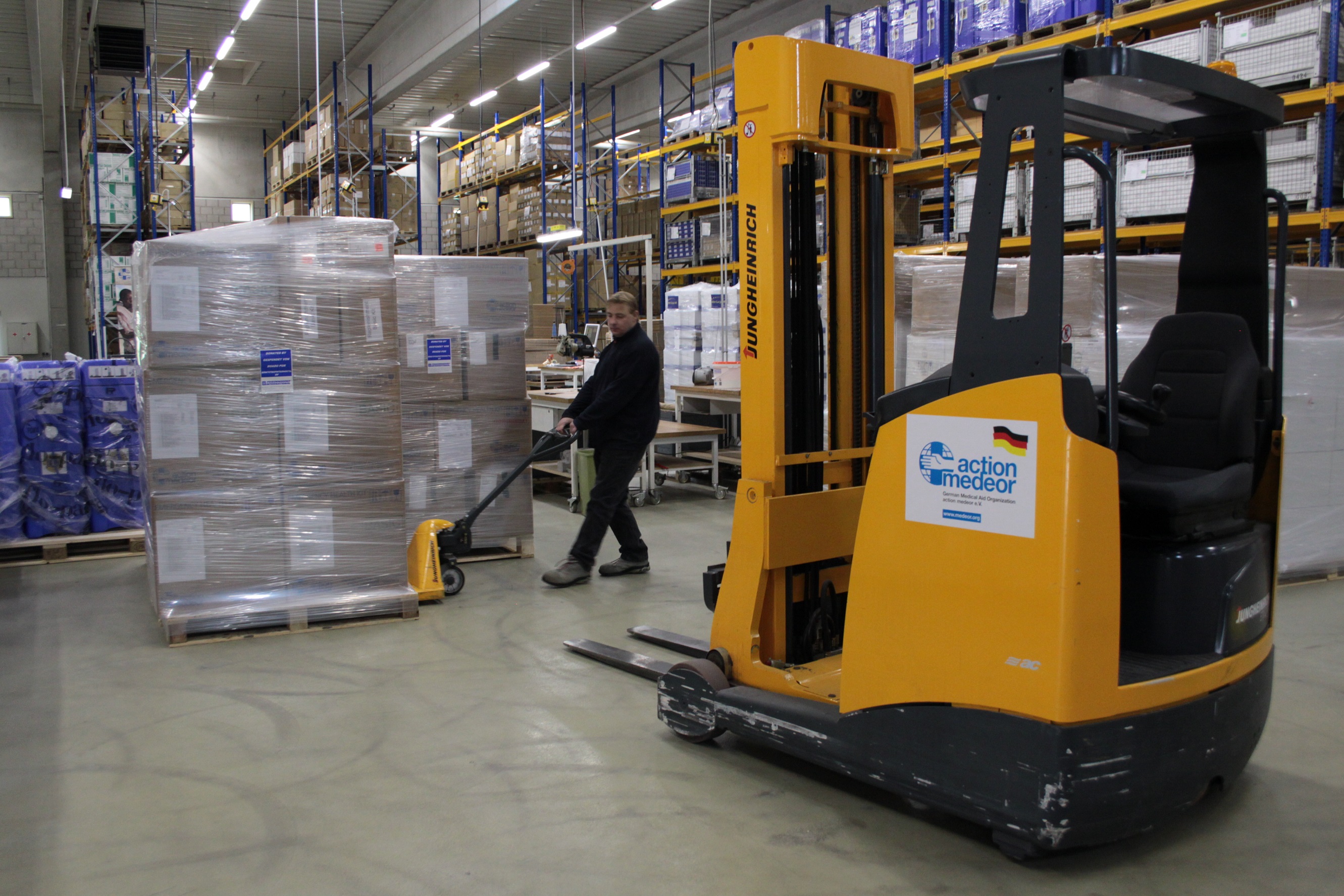 El Día Mundial de la Ayuda Humanitaria del pasado viernes estuvo dedicado a las personas y a las instituciones que ayudan a la gente necesitada en todo el mundo. Fundada en 1964, la organización de ayuda médica alemana, action medeor e.V., apoya a las personas en los países en vías de desarrollo con medicamentos y equipos médicos. En la actualidad, action medeor es la mayor organización europea de ayuda médica. Junto con socios locales, suministra medicamentos y material médico a unos 10.000 puestos sanitarios en 140 países de todo el mundo. Jungheinrich ha estado apoyando este importante trabajo durante diez años. La empresa acaba de anunciar una nueva donación de 35.000 euros a action medeor.